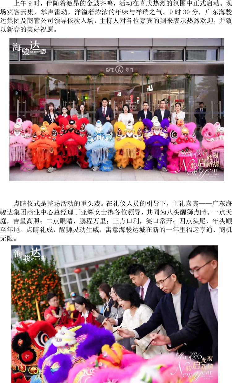 顺德海骏达城2026年新春开门红醒狮贺岁仪式圆满举行