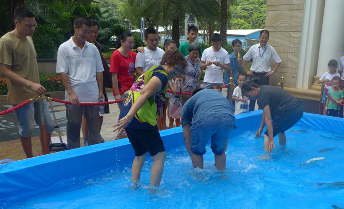 在本次活动中最激动人心的就要数捕鱼达人游戏了,在几十平方米大的水池,放的都是两斤以上的大鱼,人们纷纷排队进水池捕鱼,只要在限定时间内抓到就是自己的啦!!